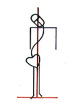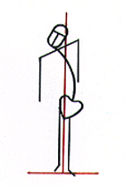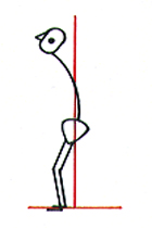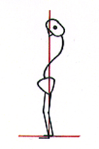 아래의 그림은 몸의 중심이 4방향(전 후 좌 우)으로 치우쳐서 반 자연 체(反 自然體=반 건강체)가 되어있는 경우이다. 즉 몸의 힘이 단전에서부터 (A)경우는 앞쪽으로 이동되어진 경우로서 동체가 전굴(前屈)형이 되어있고 (B)경우는 뒤쪽으로 이동되어진 경우로서 동체가 역S자(逆S字)형이 되어있으며 (C)경우는 오른쪽으로 이동되어진 경우로서 동체가 우경(右傾)형이 되어있고 (D)경우는 왼쪽으로 이동되어진 경우로서 동체가 역S자(逆S字)형이 되어있다.