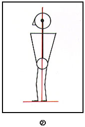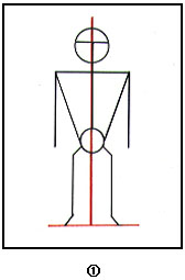 바른 자세가 되려면 입위(立位)시에 정면에서 볼 때는 정중면(正中面→머리정수리에서 양발사이 중심점을 향해서 몸을 좌우 측으로 나눈 면→그림①참조)을 기준으로 하여 좌 우측이 힘의 균형이 잡혀야하고, 측면에서 볼 때는 관상 면(冠狀 面→머리 정수리에서 발바닥 한가운데로 향하는 수직면으로서 정중 시상 면과는 직각이 되는 면→그림②참조)을 기준으로 하여 전후 측이 힘의 균형이 잡혀야하며, 허리뼈 3번을 횡단면(橫斷面→지면과 수평이 되는 면→그림③참조)으로 하여 위아래 측을 볼 때는 힘이 하체 쪽으로 내려져 있어야 한다.