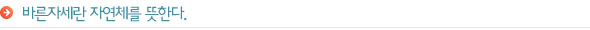 바른 자세란 자연체(정상체)를 의미하며 자연체란 자연의 법칙대로 조금치도 잘못 됨이 없이 설계되어진 몸 본래의 자세를 말한다. 즉 인체가 역학적(力學的)으로 균형 잡혀있고 안정되어있으며 유연성이 큰 인격체를 말하는데 이때는 신체의 전 능력(집중력, 적응력, 지구력, 안정력, 억제력)이 완전하게 발휘되어지고 있으므로 이런 몸을 가리켜 참된 의미의 건강체라고 한다.